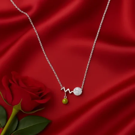 Women’s 925 Silver Tennis Racket “Heartbeat” Necklace with Green Enamel Ball
