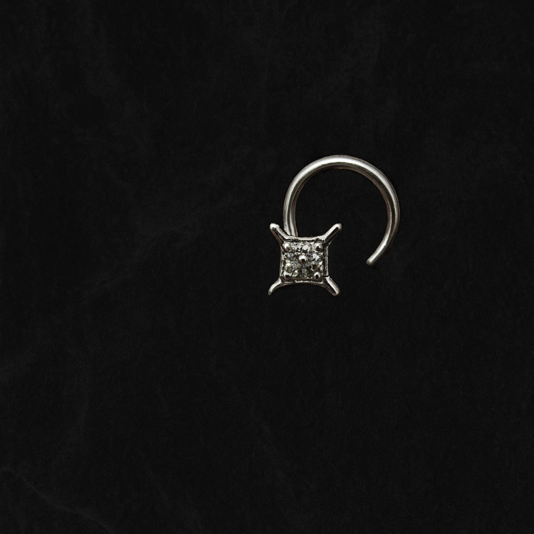 925 Silver Square Diamond Nose Pin for Women & Girls
