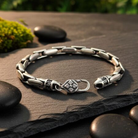 Rugged Oxidized 925 Silver Men’s Chain Bracelet with Artisan Clasp | Bold & Timeless