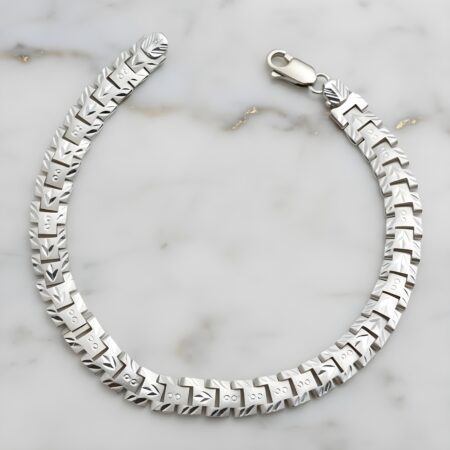 Textured Box Link 925 Sterling Silver Men’s Bracelet