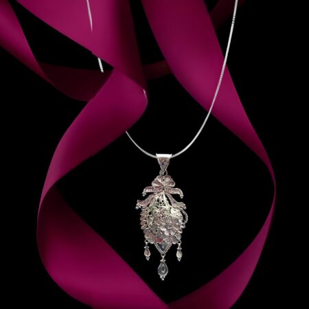 Elegant Sterling Silver Pendant with Floral and Teardrop Charms