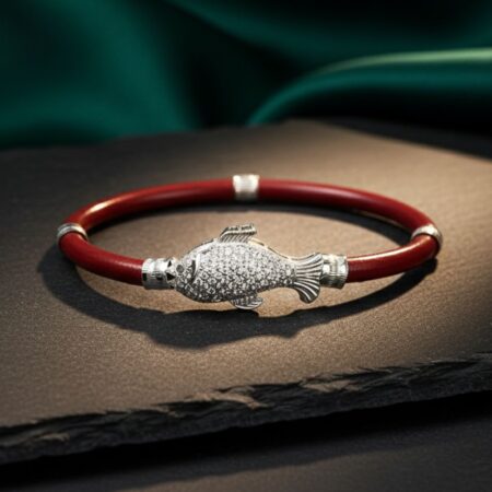 Elegant Silver Red Pola Bangle – Traditional Design with Red & Blue Stones