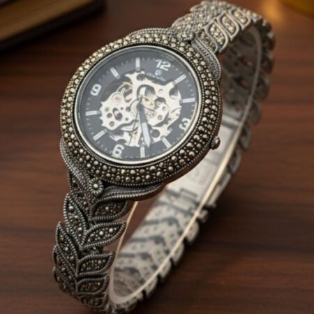 Vintage Marcasite 925 Silver Men’s Skeleton Bracelet Watch