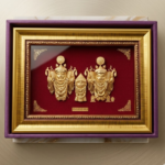 - Elegant Design: Set against a rich red velvet background and housed in a golden carved frame, it adds a royal and spiritual touch to any living space or puja room.