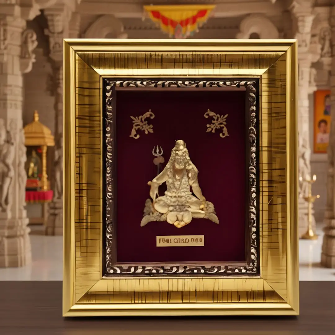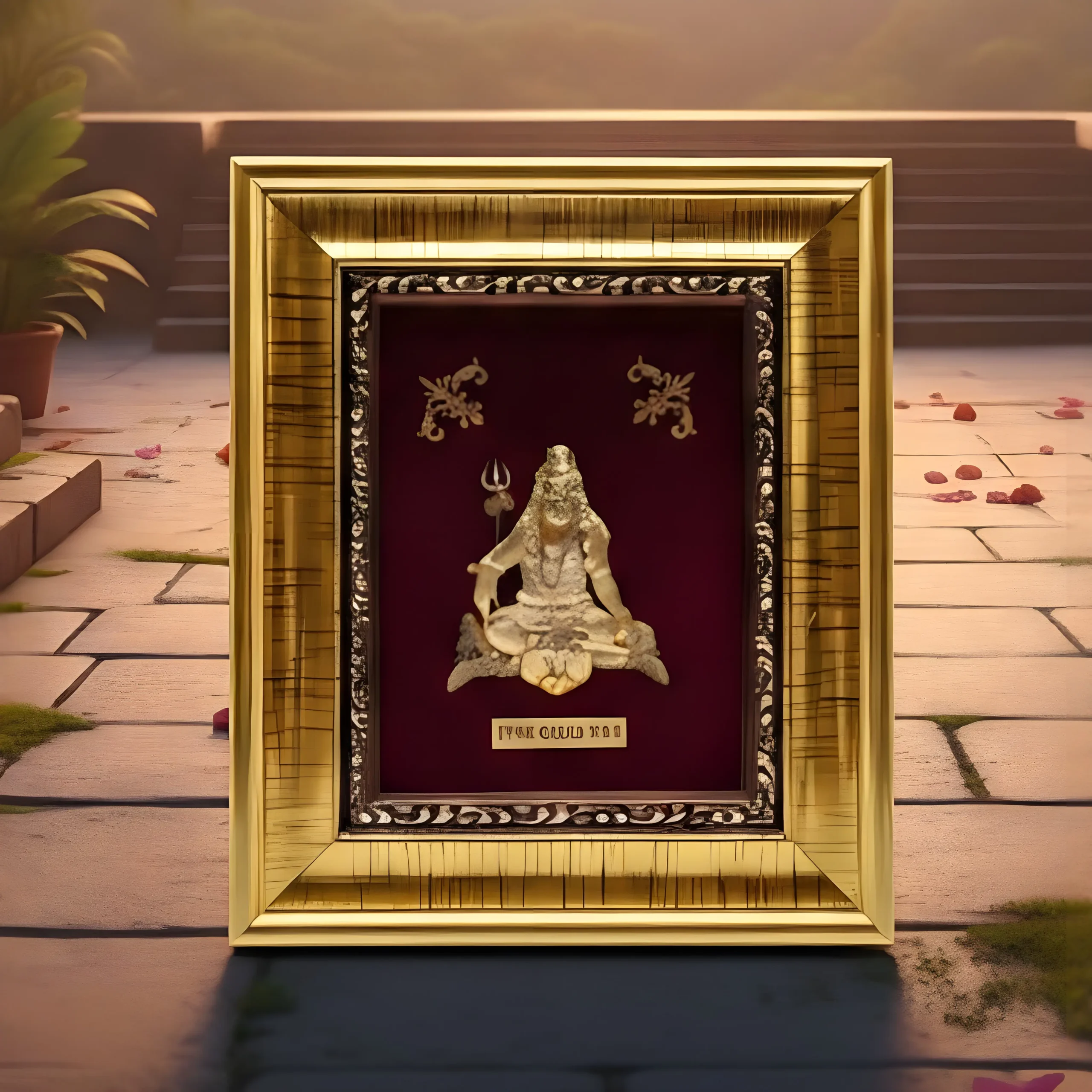 Bring a sense of tranquility and spiritual awakening to your surroundings with this Premium 24k Gold Plated Lord Shiva Photo Frame. This masterpiece depicts Mahadev in a serene meditative posture, meticulously crafted with 99.9% fine gold plating. The idol features the sacred Trishul and calm expression, representing the source of all energy and peace.