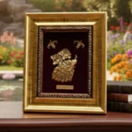 Whether placed on a mantle, a study desk, or a display shelf, this golden Mayur frame captures the light and the attention of every guest.