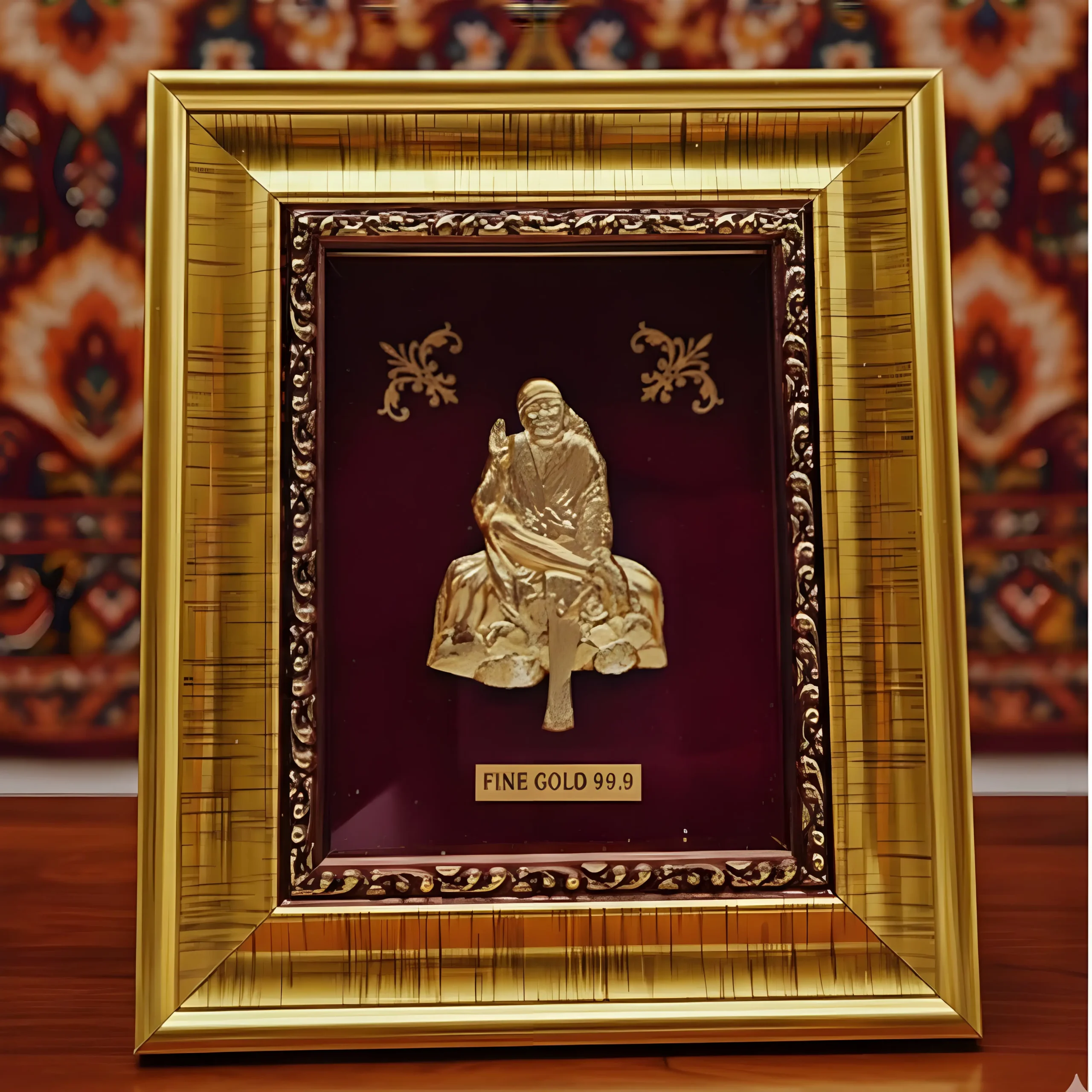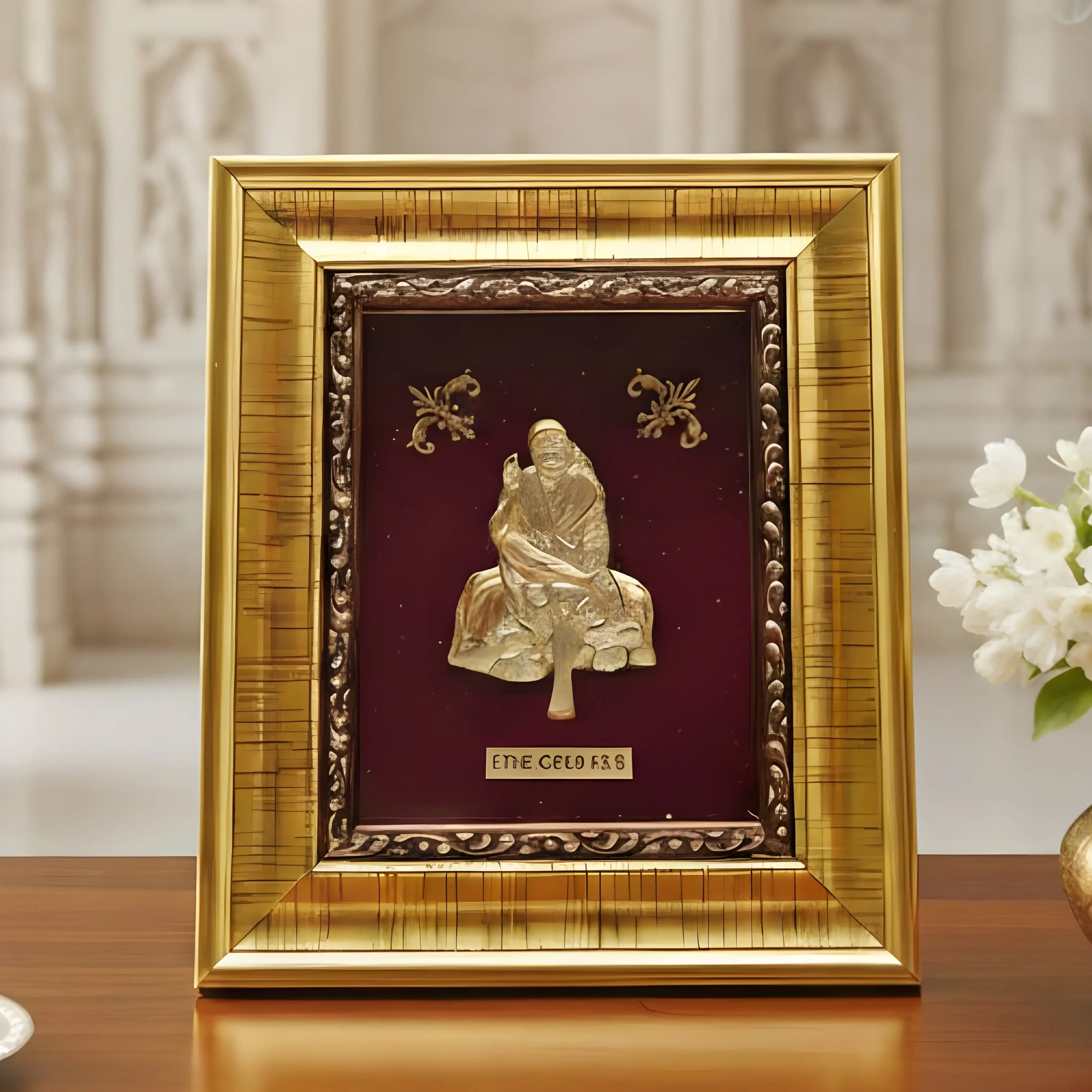 Embrace the teachings of “Sabka Malik Ek” with this Premium 24k Gold Plated Shirdi Sai Baba Photo Frame. This spiritually uplifting piece features a beautifully detailed depiction of Sai Baba in his iconic sitting posture, crafted with 99.9% fine gold plating.