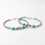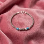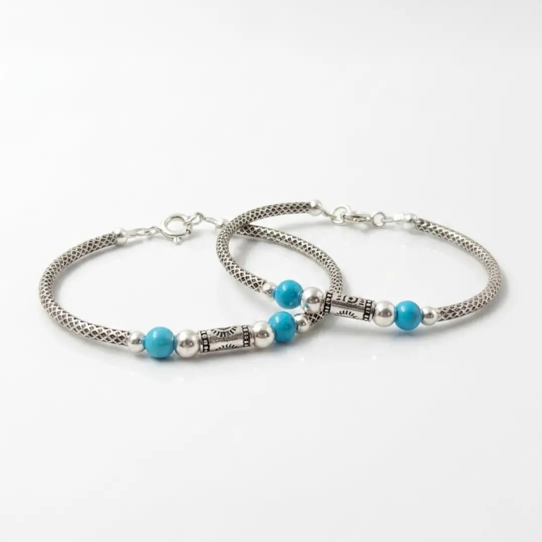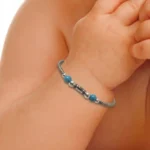 Give your baby the gift of protection and style with our handcrafted 925 Silver Baby Nazariya Kada. This unique design combines traditional “Nazariya” elements with vibrant Turquoise beads and a symbolic Evil Eye charm to ward off negativity. Made from high-quality Fine 925 Silver, these kadas feature a beautiful textured finish that adds a modern touch to a classic protective accessory.
