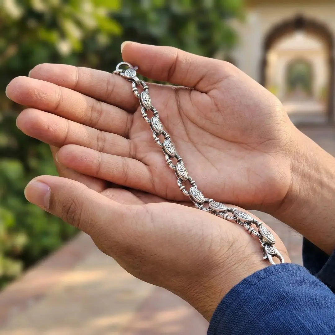Redefine your personal style with our signature 925 Silver Bracelet. In this piece, industrial strength meets masterful artisanal craftsmanship. We have meticulously engineered this bracelet to be more than a simple accessory; it represents a curated expression of boldness and prestige. Because it features a high-luster, precision-crafted flat curb link chain with a sturdy Kada-style silhouette, this design serves as a timeless symbol of confidence and modern luxury. Furthermore, the heavy-duty construction provides a radiant finish that transitions effortlessly from everyday casual wear to sophisticated formal elegance.