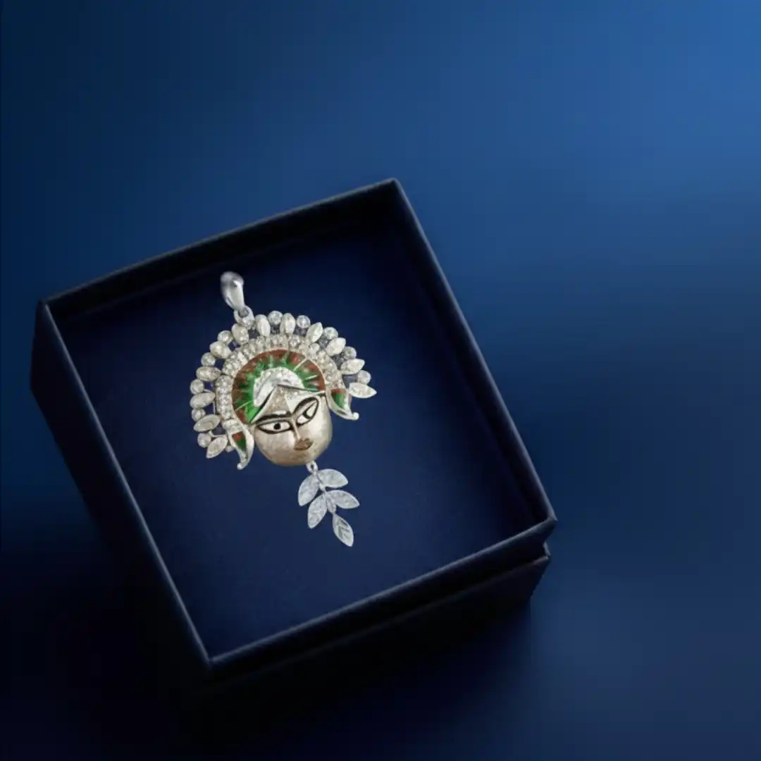 Embellishment: Beautiful enamel detailing that enhances the elegance of this silver Maa Durga pendant