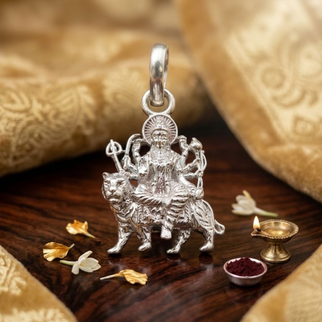 Divine Strength & Grace: Pure 925 Silver Durga Maa Pendant