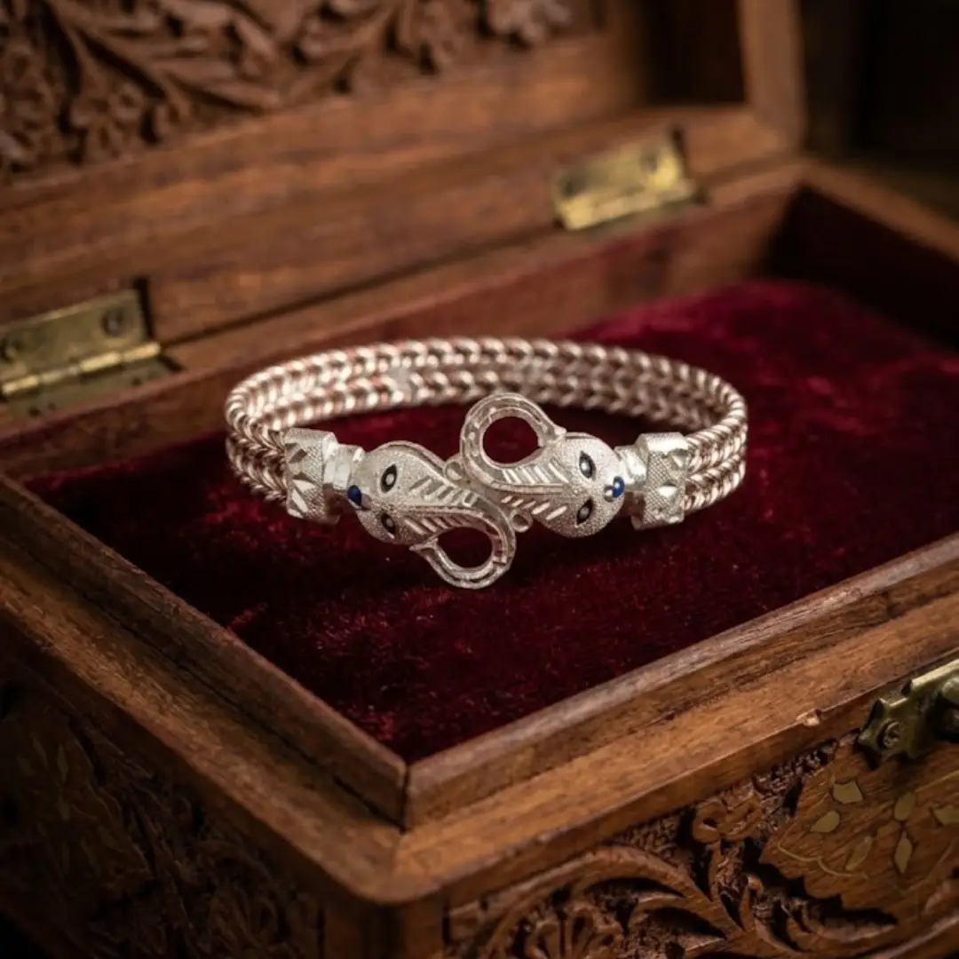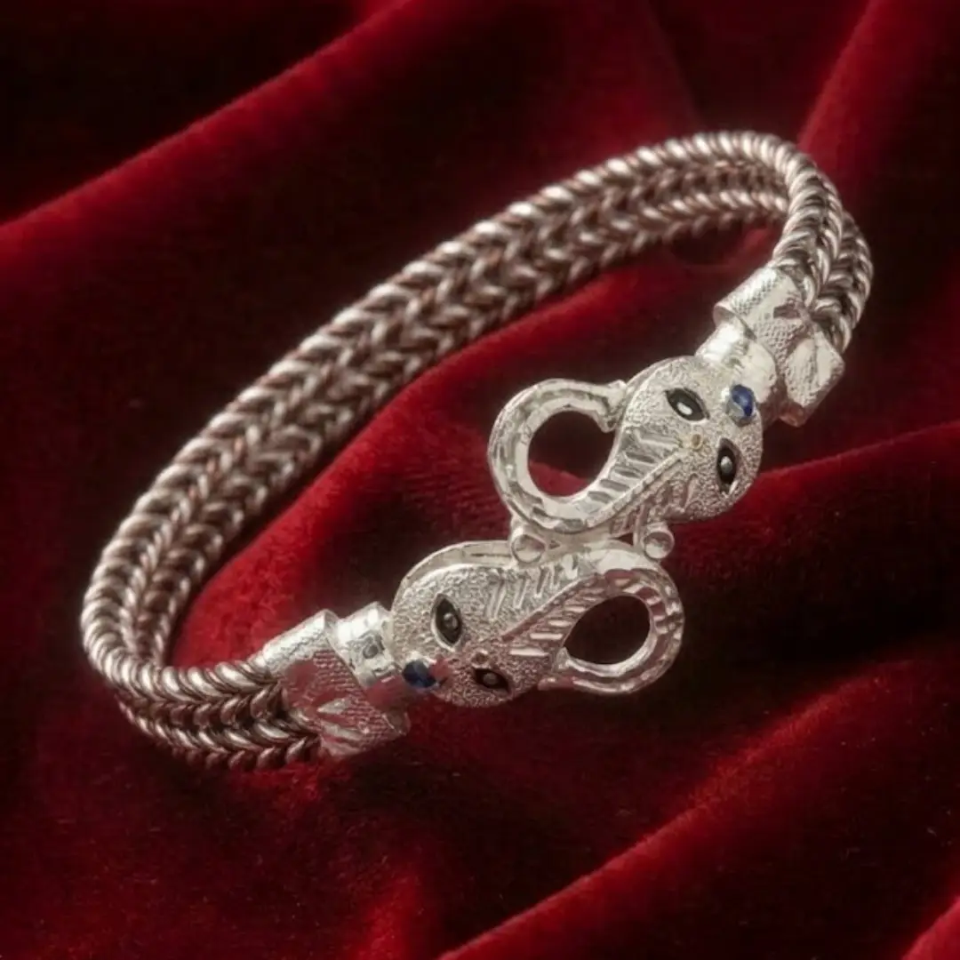 Ideal for those seeking traditional “Nazariya” protection with a high-end designer feel, this Noya bangle is a symbol of wisdom and power. The textured silver work and high-polish finish make it a versatile accessory that complements both ethnic and contemporary outfits.