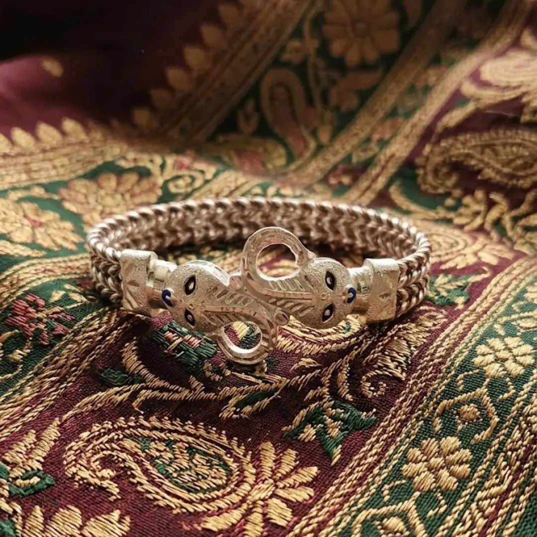 - Design: Intricate Elephant head motif with blue stone detailing and a heavy braided-style band.