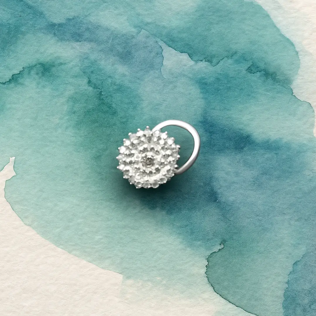 Elevate your traditional charm with this exquisite 925 Sterling Silver Floral Cluster Nose Pin. Designed with a delicate flower-inspired motif, it reflects timeless elegance and intricate craftsmanship. Perfect for both everyday wear and festive occasions, this lightweight and skin-friendly nose pin adds a subtle sparkle to your look. Made from genuine sterling silver, it ensures lasting shine and durability — a must-have for every jewelry lover.