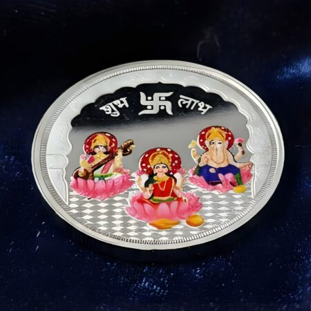 Invite wealth, prosperity, and wisdom into your home with this 925 Silver Laxmi Ganesh Coin. Beautifully crafted with detailed engraving and vibrant colors, it features Goddess Lakshmi and Lord Ganesha together, symbolizing good fortune and success. Perfect for Diwali puja, wallet keeping, or festive gifting, this coin adds a divine touch to your spiritual collection. The high-quality silver polish ensures lasting shine and purity.