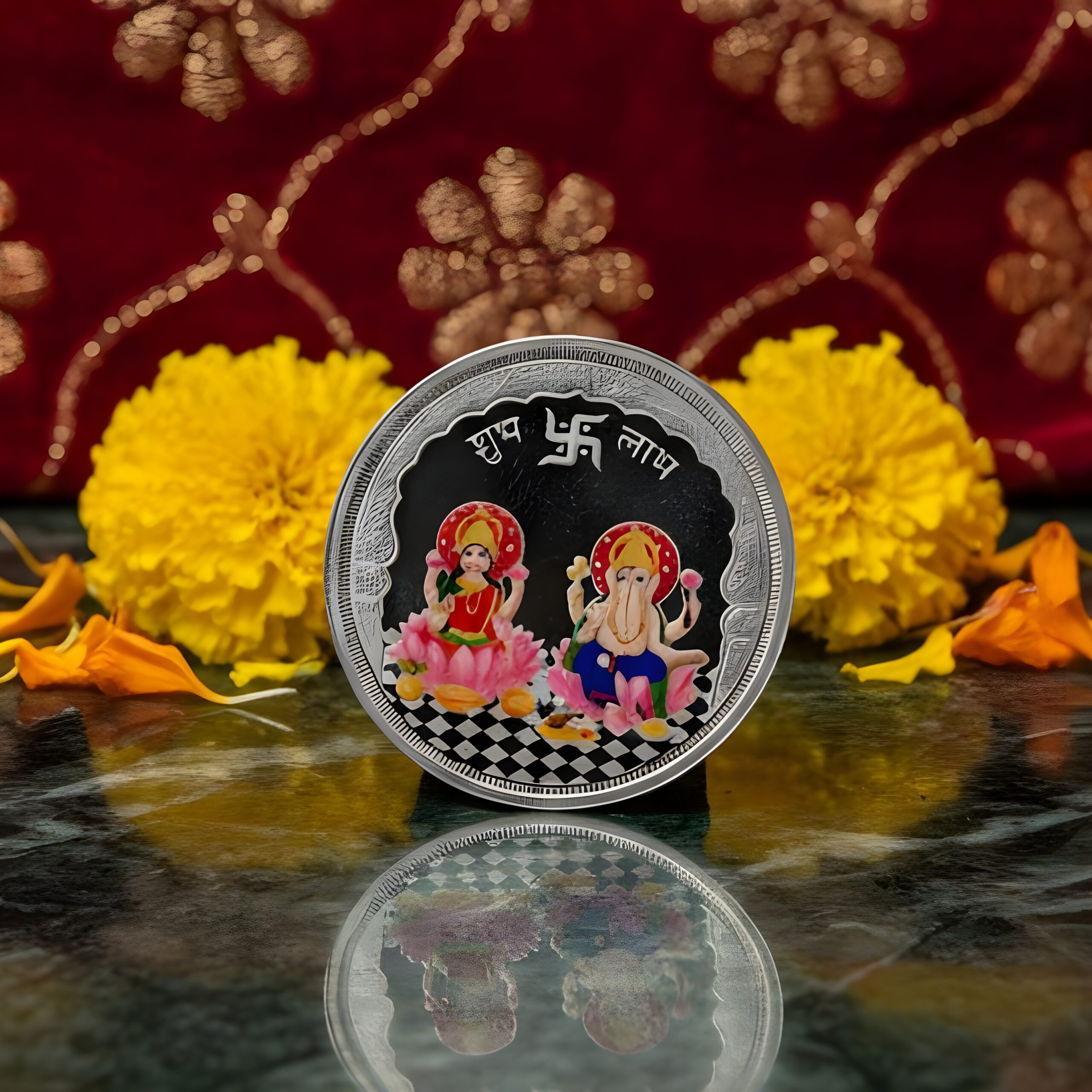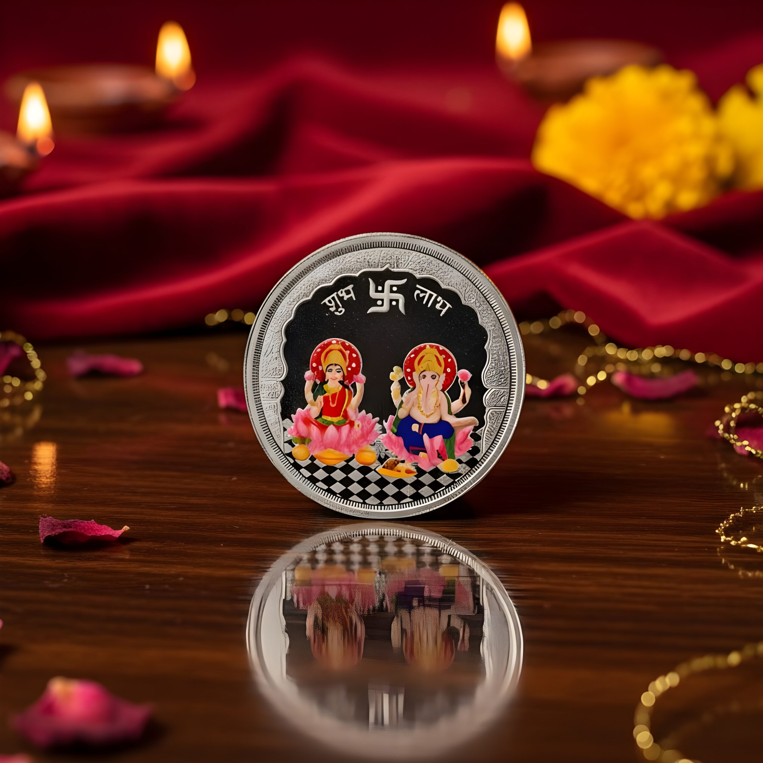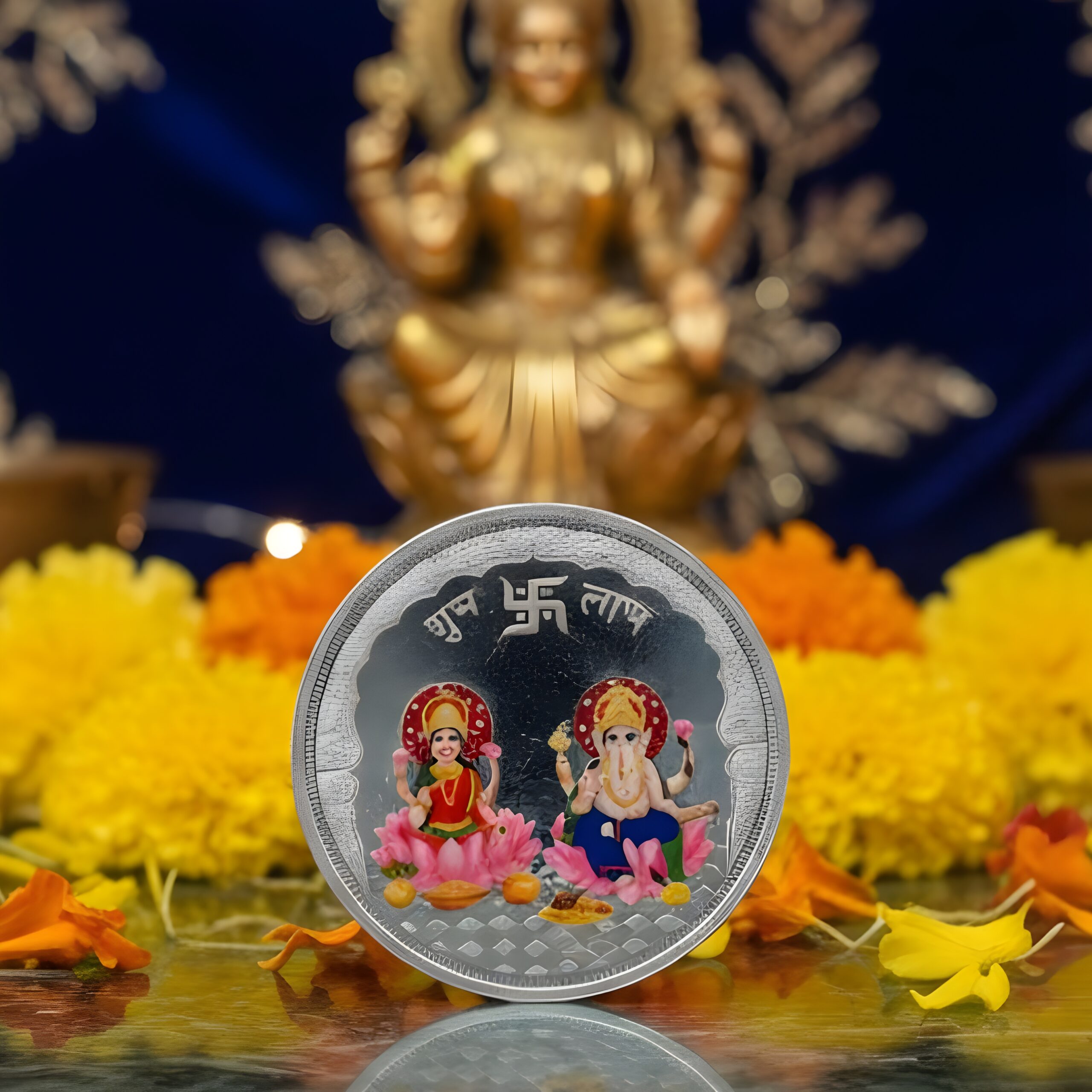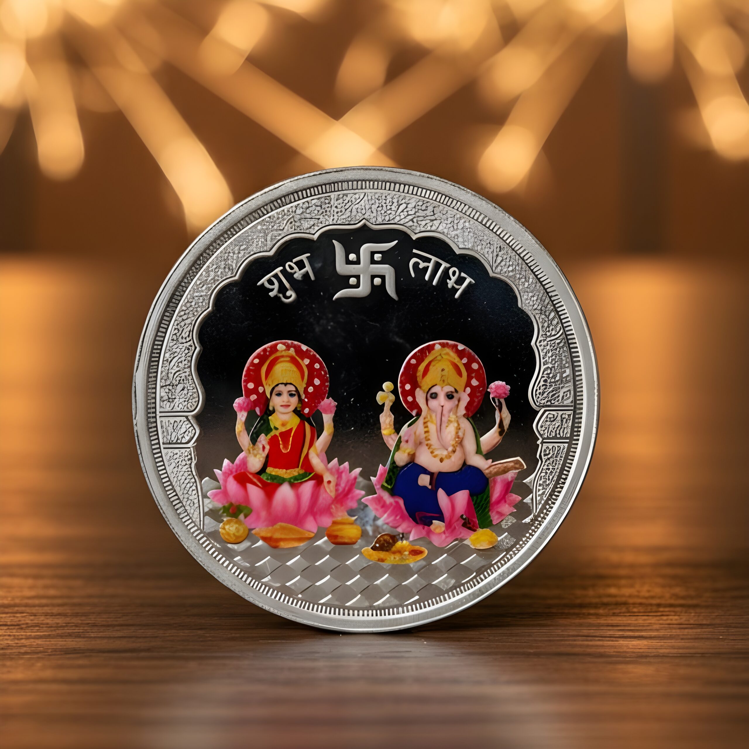 925 Silver Laxmi Ganesh Coin – Auspicious Pure Silver Coin for Puja, Diwali & Gifting