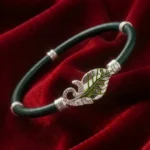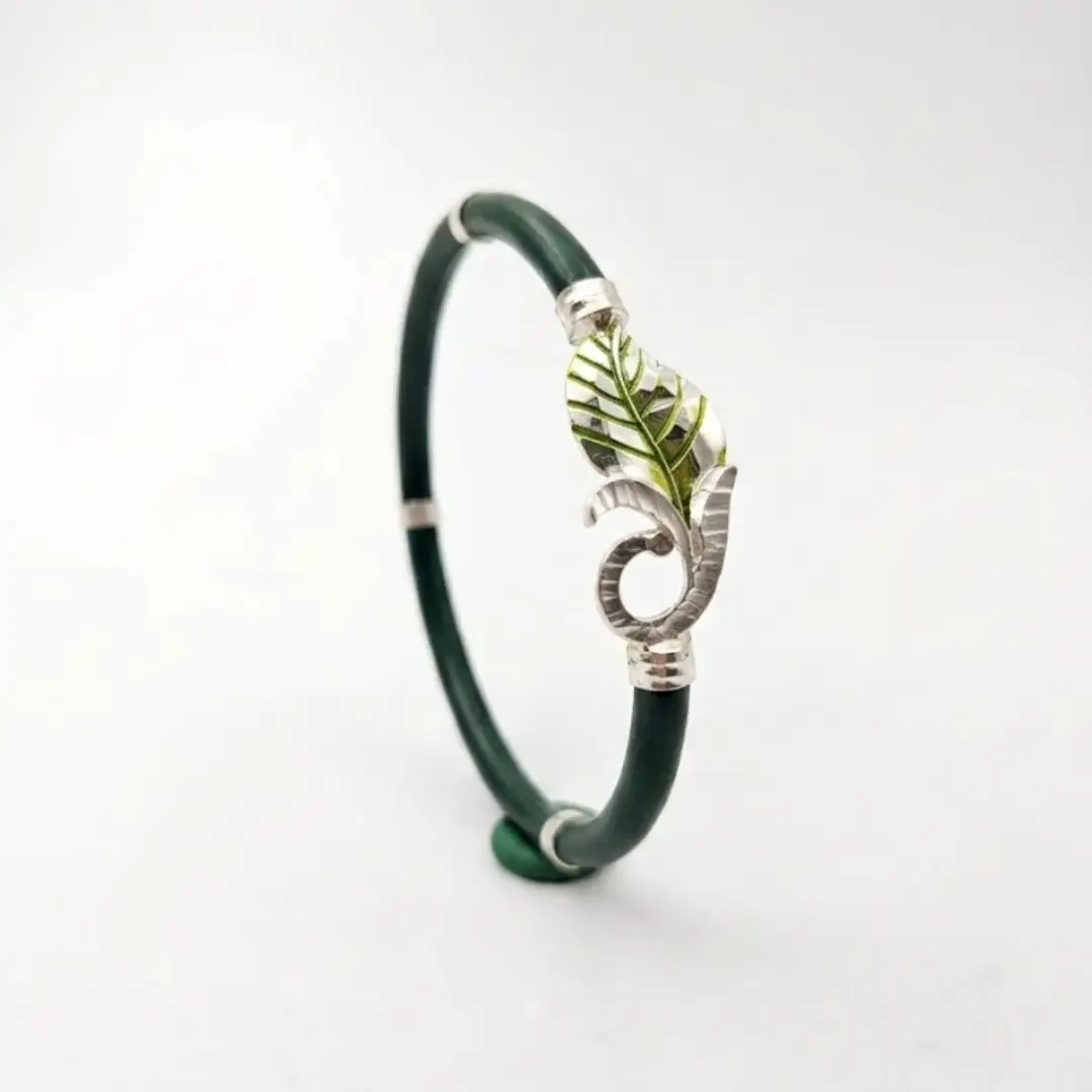 Add a touch of nature-inspired elegance to your jewelry collection with the 925 Silver Leaf Noya Bangle from The Velvet Box. This unique piece features a beautifully handcrafted silver leaf motif, symbolizing growth and renewal, set against a sleek and durable black cord.