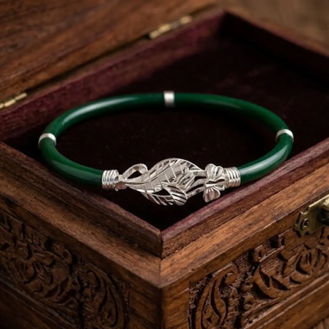 A Touch of Heritage Luxury – Premium 925 Silver Noya Bangle (Green Designer Edition)