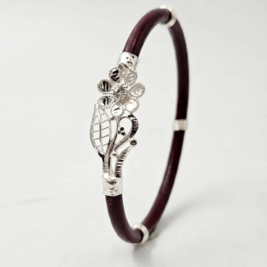 Elevate your jewelry collection with the signature 925 Silver Noya Bangle from The Velvet Box. These bangles are masterfully crafted for women who appreciate the fine balance between traditional significance and contemporary aesthetics.