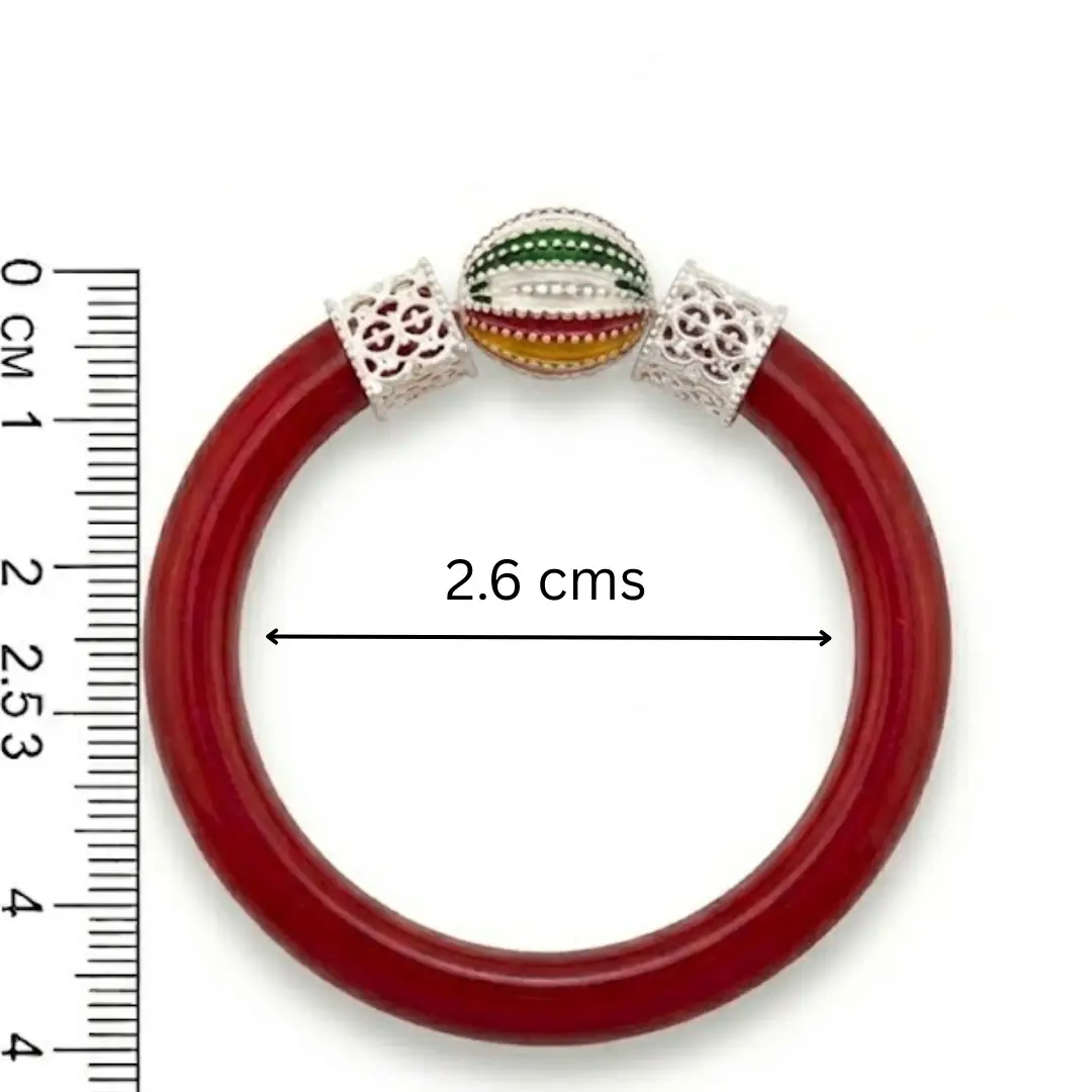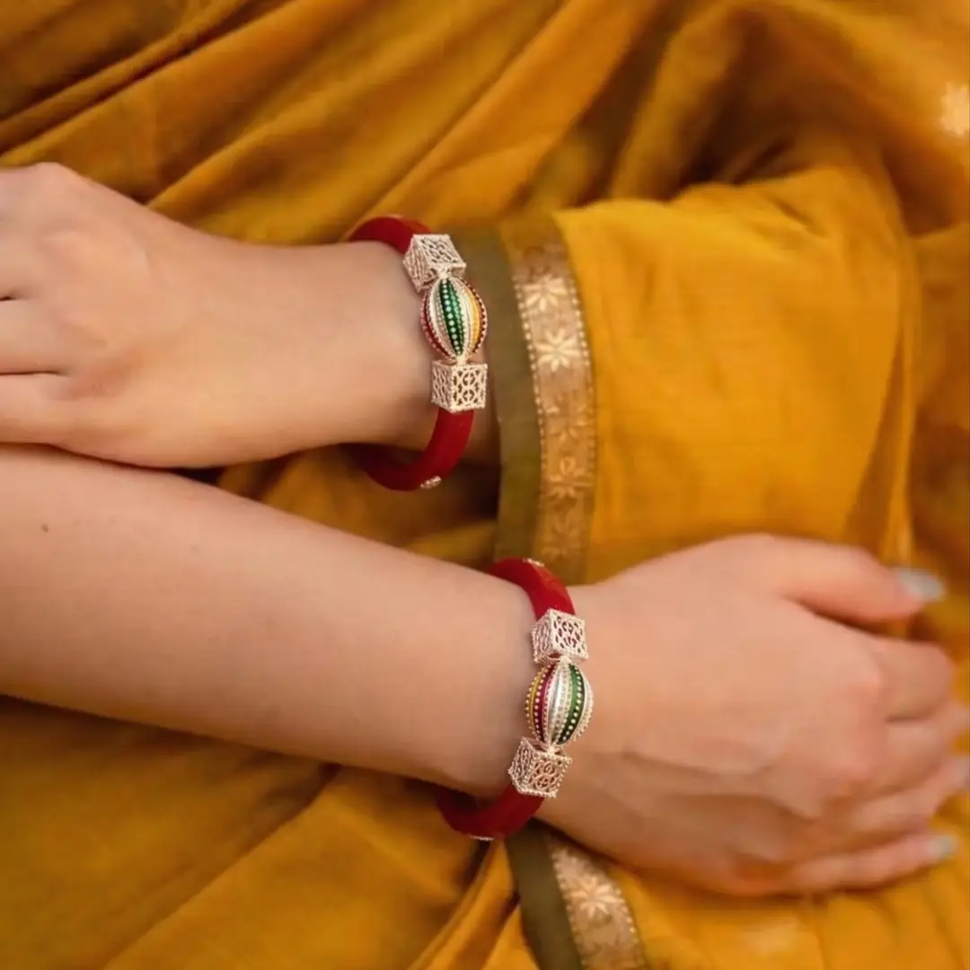 Celebrate tradition with a touch of modern luxury. Our 925 Silver Pola Bangles are meticulously crafted for women who value authenticity and style. These bangles feature high-quality red resin (Pola) beautifully encased in intricate, hand-finished silver work, making them a perfect accessory for daily wear or special festive occasions.