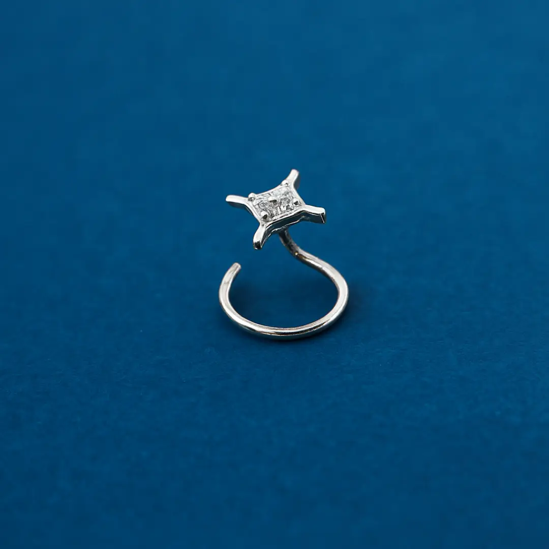Enhance your everyday look with this elegant 925 sterling silver square nose pin. Featuring a sleek minimalist design adorned with a sparkling cubic zirconia stone, this nose pin brings effortless sophistication and charm. Perfect for both traditional and modern styles, it’s lightweight, skin-friendly, and comfortable for daily wear.