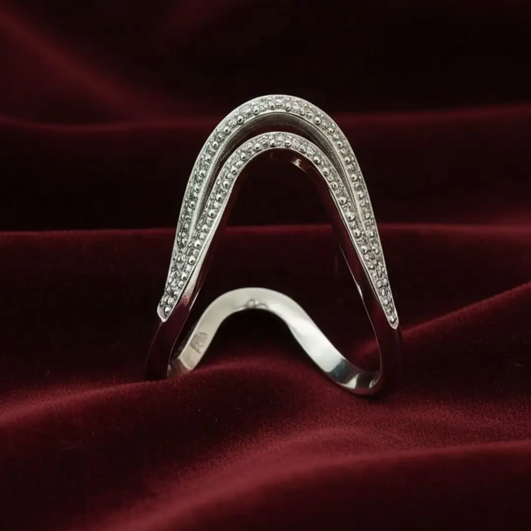 This elegant 925 sterling silver adjustable ring features a graceful curved wave design highlighted with sparkling cubic zirconia stones. The flowing, open-ended pattern gives the ring a modern and sophisticated look, perfect for women who love minimal yet stylish jewellery.
