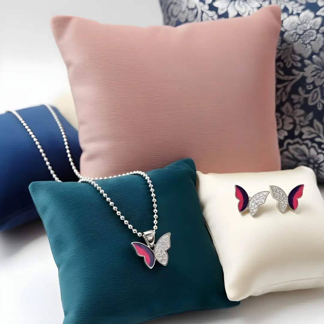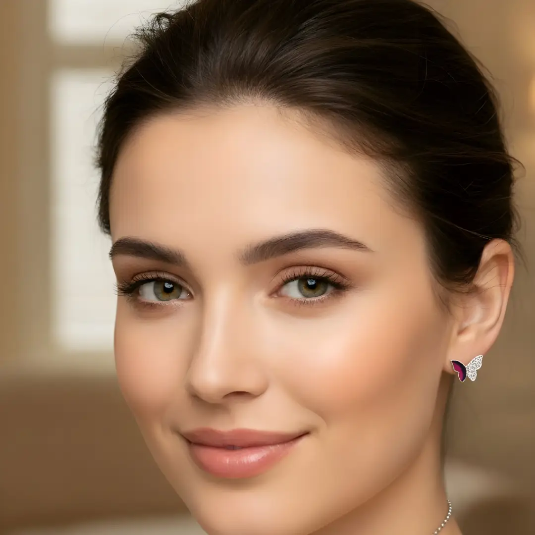 Enhance your everyday elegance with this charming 925 sterling silver butterfly jewellery set. Designed with a graceful butterfly motif, the pendant features a sparkling stone-studded wing paired with a rich enamel finish on the other wing, creating a beautiful contrast. The set is completed with matching butterfly stud earrings, perfectly coordinated for a refined look.