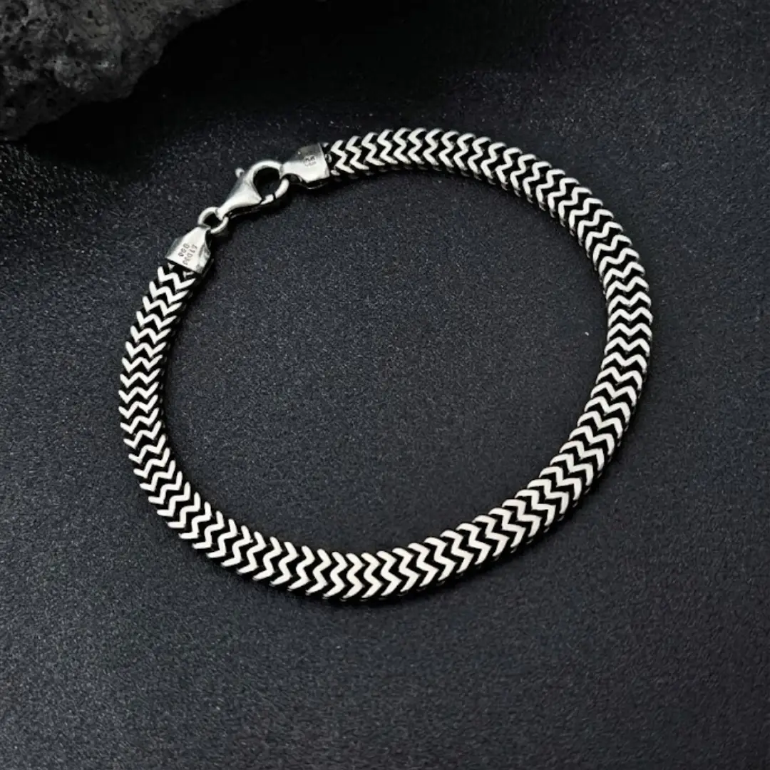 Redefine your personal style with our exquisite 925 Silver Men’s Bracelet. Designed specifically for the man who appreciates rugged elegance and fine craftsmanship, this piece features a unique Chevron V-shape link design. The oxidized vintage finish adds depth and character, giving it a bold, masculine look that stands out. Crafted from premium-grade 925 sterling silver, this bracelet provides a sophisticated aesthetic that resists the wear of time, making it an essential addition to your daily wardrobe.