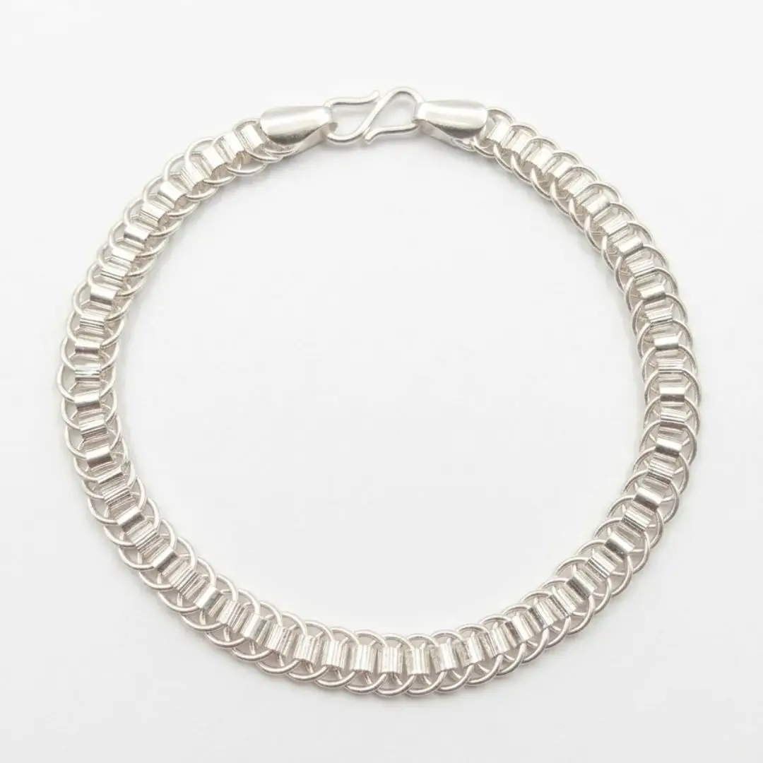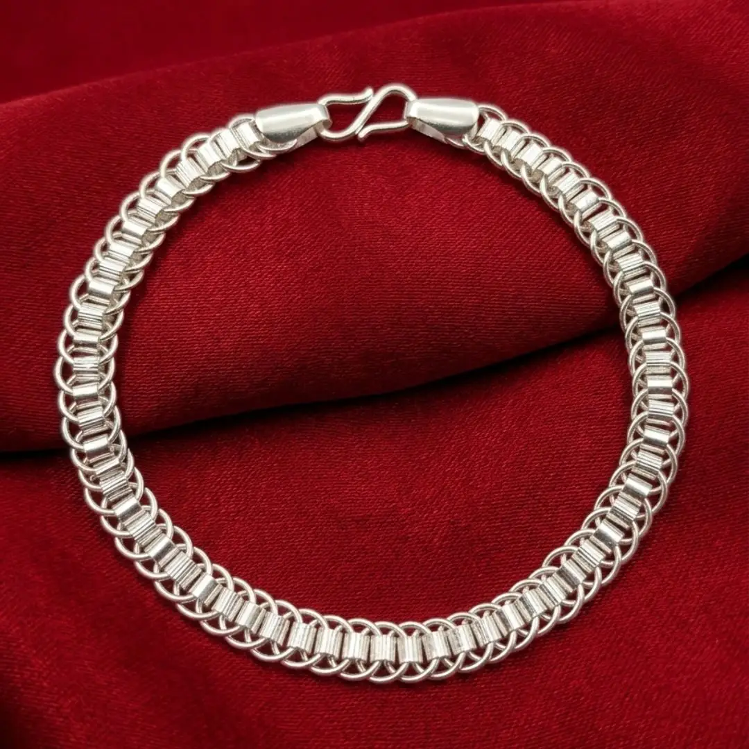Elevate your accessory game with our 925 Silver Designer Bracelet. This exquisite piece features a contemporary circular link pattern, creating a fluid and eye-catching “ring-on-ring” effect that wraps elegantly around the wrist. Crafted for women and girls who appreciate modern aesthetics, this bracelet is the perfect balance of bold design and lightweight comfort.
