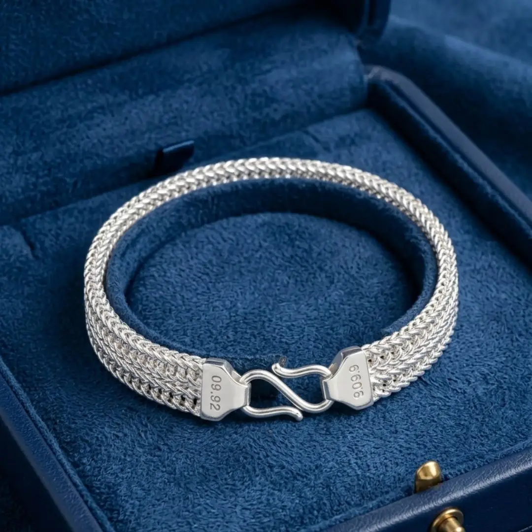 Redefine your personal style with our signature 925 Silver Bracelet. In this piece, industrial strength meets masterful artisanal craftsmanship. We have meticulously engineered this bracelet to be more than a simple accessory; it represents a curated expression of boldness and prestige. Because it features a high-luster, precision-crafted rope link chain, this design serves as a timeless symbol of confidence and modern luxury. Furthermore, the heavy-duty construction provides a radiant finish that transitions effortlessly from everyday casual wear to sophisticated formal elegance.