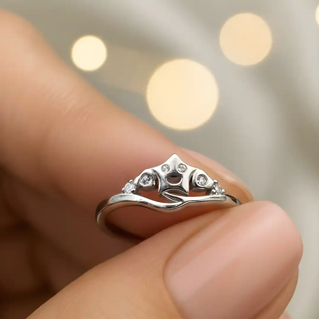 This elegant 925 sterling silver ring features a delicate crown-inspired design accented with subtle sparkling stones, symbolizing grace, confidence, and royalty.