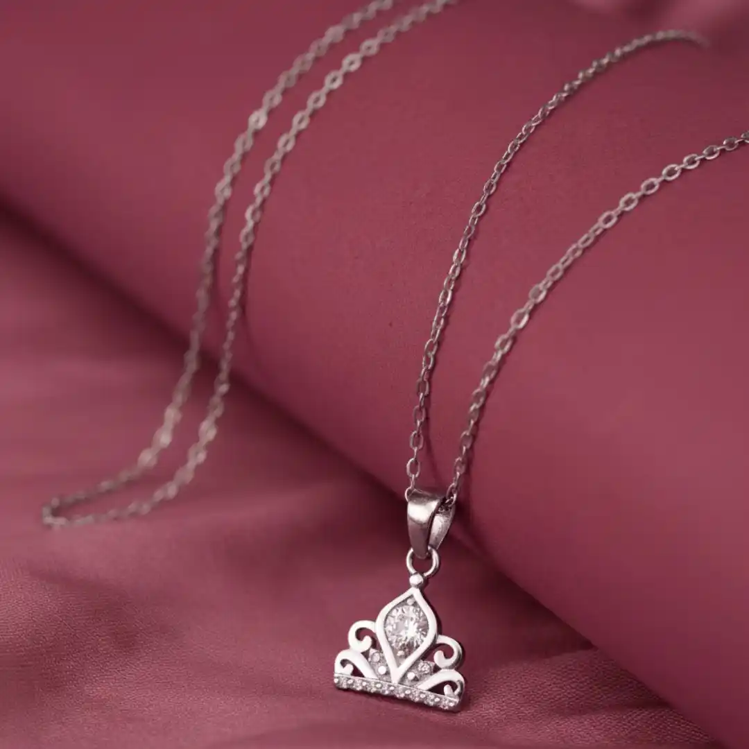 Stylish crown-design pendant crafted from 925 sterling silver with sparkling stone accents. Lightweight and elegant, perfect for daily wear or gifting. Chain not included.