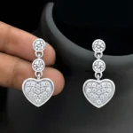 Enhance your everyday elegance with these beautifully crafted 925 Sterling Silver Heart Drop Earrings. Featuring a refined double round CZ stud design paired with a sparkling pavé-set heart-shaped dangle, these earrings deliver timeless charm with a modern touch.
