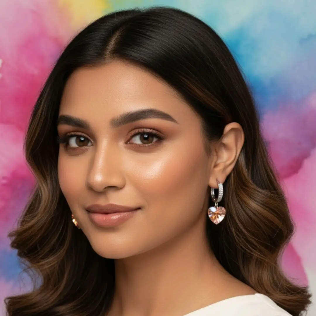 Crafted for comfort and everyday elegance, these earrings are lightweight, skin-friendly, and feature a secure snap-lock closure for effortless wear. The soft champagne-gold tone heart crystal reflects light gracefully, making them perfect for daily wear, office wear, date nights, parties, and festive occasions.
