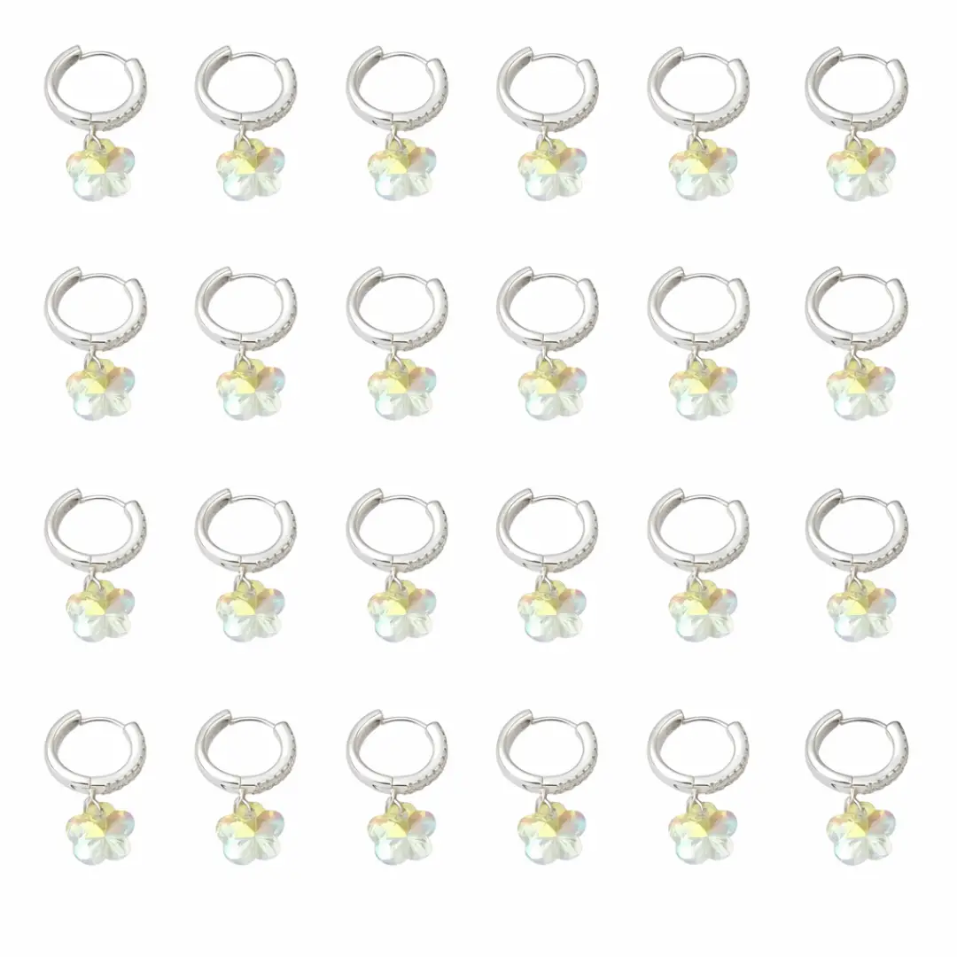 Enhance your everyday elegance with these 925 Sterling Silver Huggie Hoop Earrings, featuring a sparkling CZ stone-studded hoop paired with a beautiful iridescent crystal flower drop. The multi-tone crystal reflects light in soft hues, giving a graceful and premium look that complements any outfit.