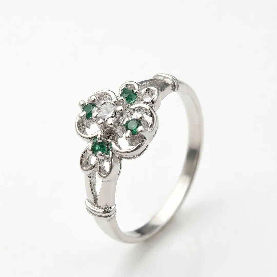 - Design: Floral Clover motif with Emerald Green and Clear Cubic Zirconia stones.