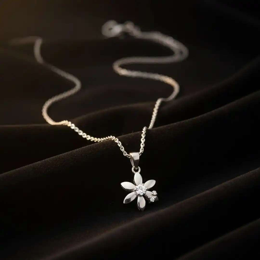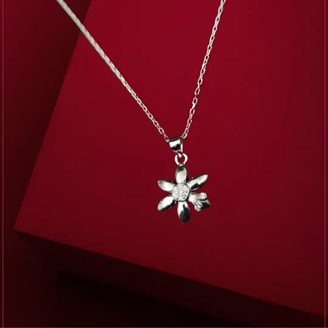 Elegant flower-design pendant made from 925 sterling silver with sparkling stones. Lightweight, stylish, and perfect for daily or party wear.