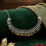 Add a touch of heritage charm to your jewellery collection with this exquisitely handcrafted 925 sterling silver choker necklace. Designed with a graceful curved silhouette, the necklace features a stunning combination of multicolor enamel accents and delicately suspended teardrop-shaped danglers, creating a rhythmic and elegant movement.
