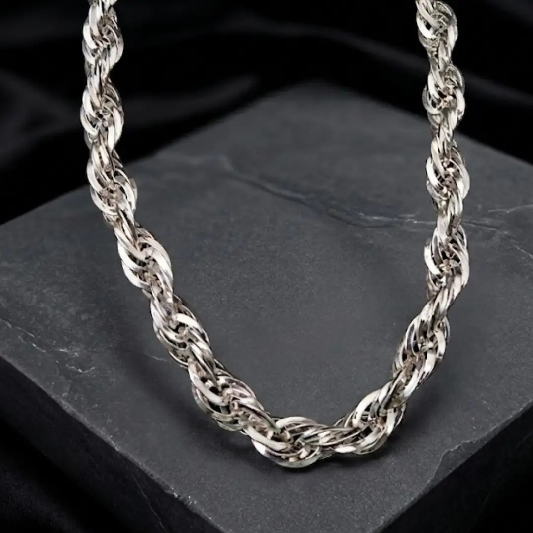 Elevate your accessory collection with our masterfully crafted 925 Silver Chain for Men. This heavy twisted rope pattern offers a bold and powerful alternative to standard flat link chains. Consequently, it provides a rugged yet luxurious aesthetic that perfectly defines the style of a modern gentleman. We meticulously weave each silver strand to create a complex, spiral texture that catches the light brilliantly. As a result, the chain delivers a multi-dimensional shine that commands immediate attention. This design makes a significant statement whether you wear it casually with a jacket or pair it with ethnic attire.