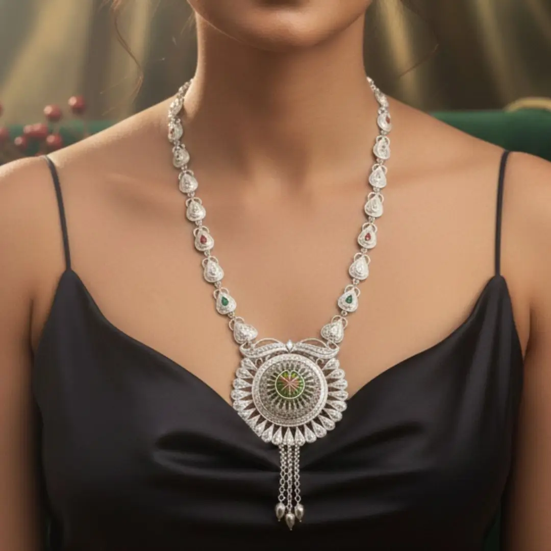 Perfectly suited for sarees, festive wear, weddings, temple occasions, and cultural celebrations, this necklace is a statement of craftsmanship, tradition, and premium silver artistry—ideal for women who love heritage jewellery with a refined modern touch.