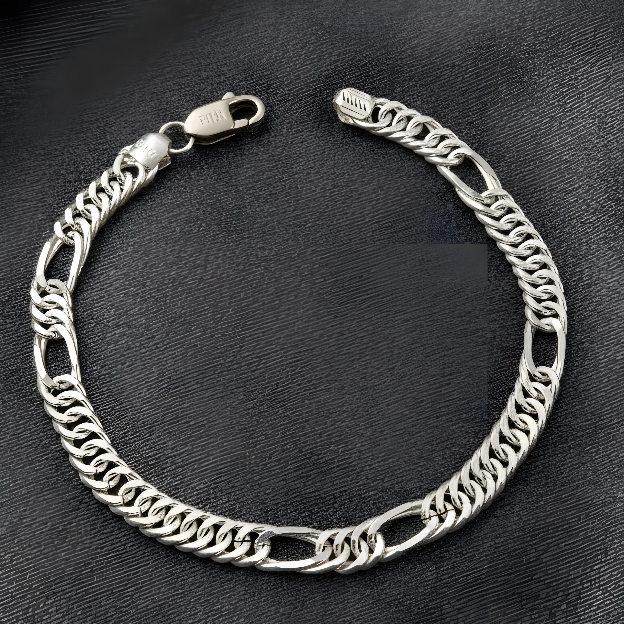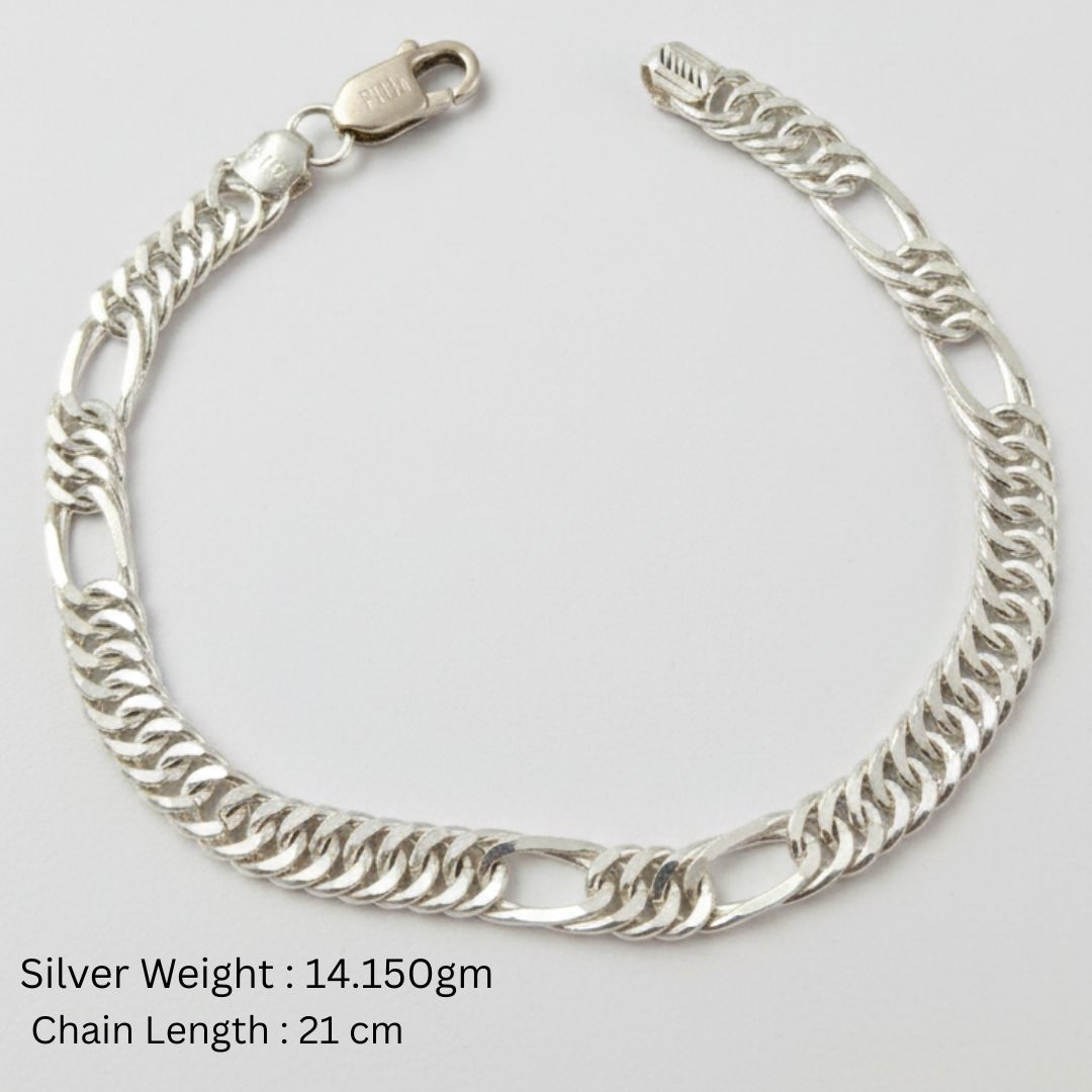 This silver bracelet pairs effortlessly with both casual and formal outfits, making it a timeless addition to every man’s collection.