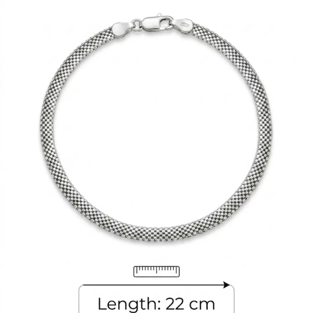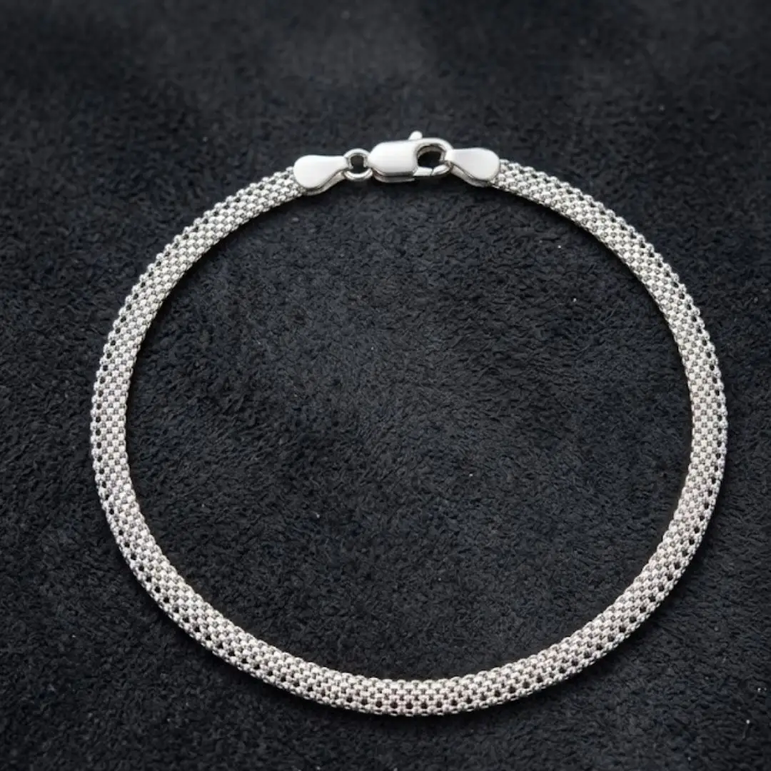 Add a layer of intricate detail to your style with our latest 925 Silver Men’s Bracelet. This masterpiece features a highly flexible and lightweight Mesh Chain (also known as a Popcorn Link) design. The circular, interwoven links create a unique 3D texture that is soft to the touch and incredibly comfortable for all-day wear. Crafted from high-grade 925 sterling silver, this bracelet offers a bright, radiant finish that perfectly complements both ethnic and Western attire.