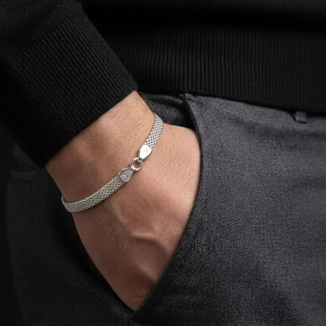 This silver bracelet for men is designed for the contemporary man who values comfort without sacrificing style. Its flexible nature allows it to move naturally with your wrist, making it an ideal accessory for an active lifestyle or long office hours. It is sleek enough to be worn alongside a watch yet distinctive enough to stand alone as a statement of luxury.