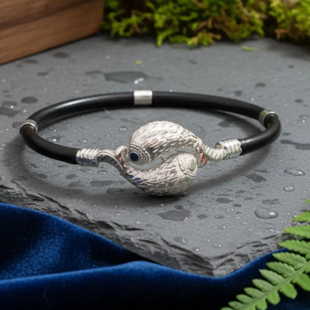 This premium 925 sterling silver NOYA bangle features a beautifully crafted evil eye ball motif, symbolizing protection, positivity, and good energy.