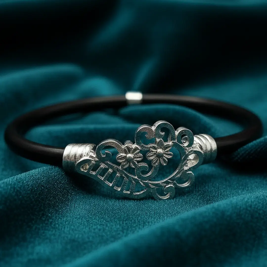 Add refined traditional charm to your jewellery collection with this elegant 925 Sterling Silver Noya Bangle, featuring a beautifully crafted floral filigree centerpiece.