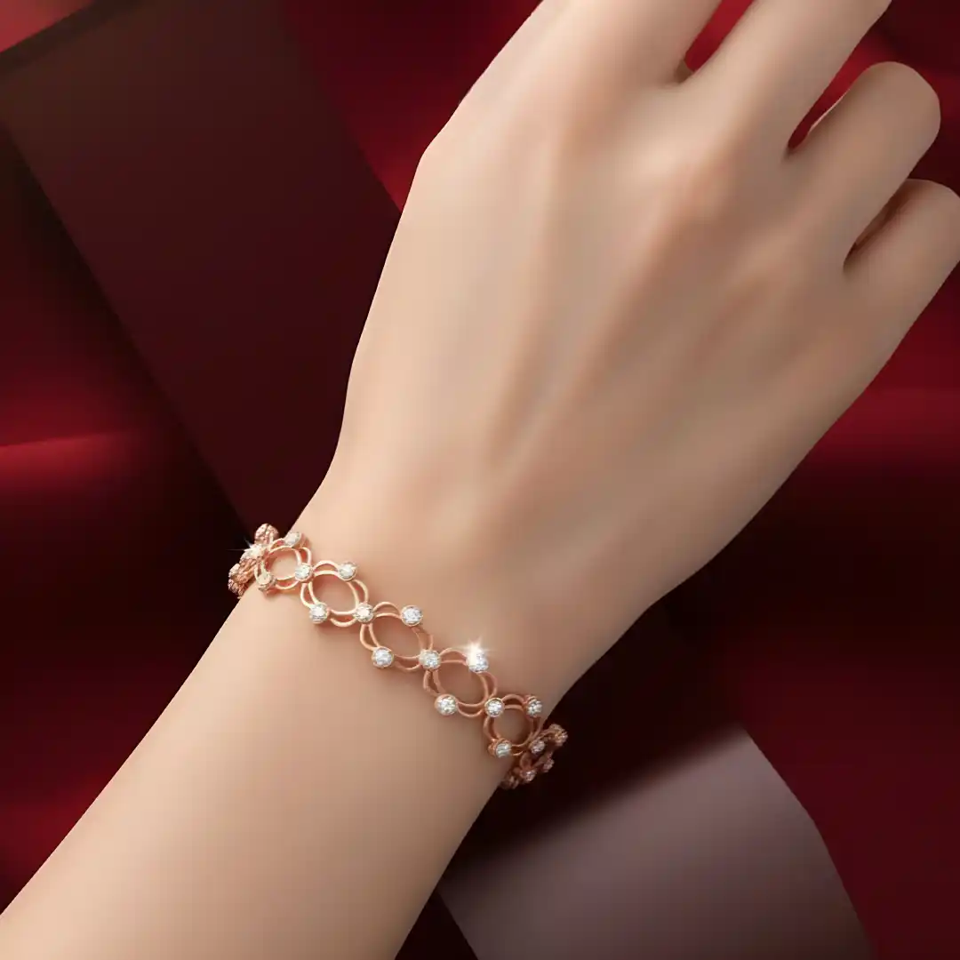 Add a touch of modern luxury to your jewellery collection with this exquisitely crafted 925 Sterling Silver Rose Gold Ring Bracelet. Designed with a contemporary open-link pattern and embellished with sparkling Cubic Zirconia stones, this bracelet reflects elegance from every angle.