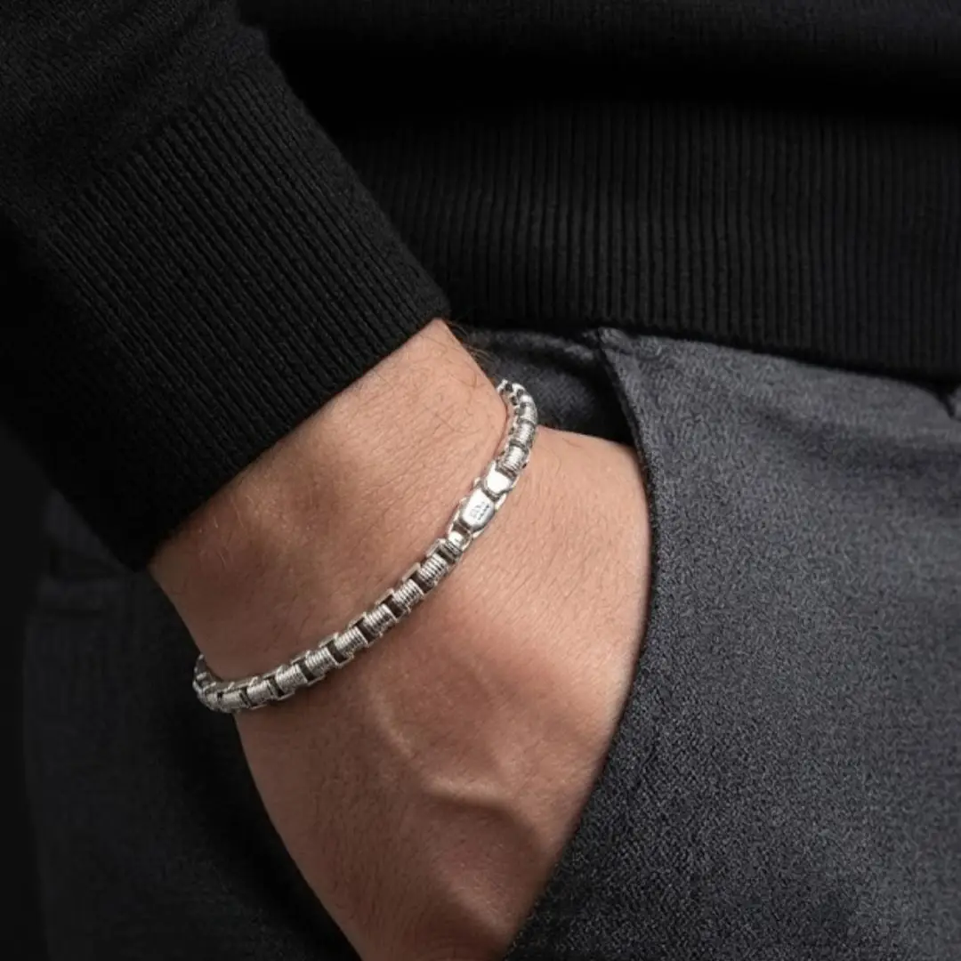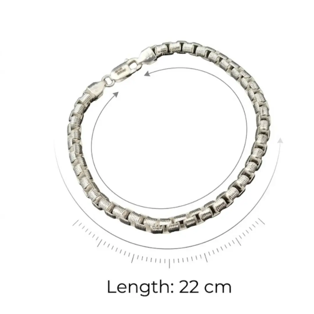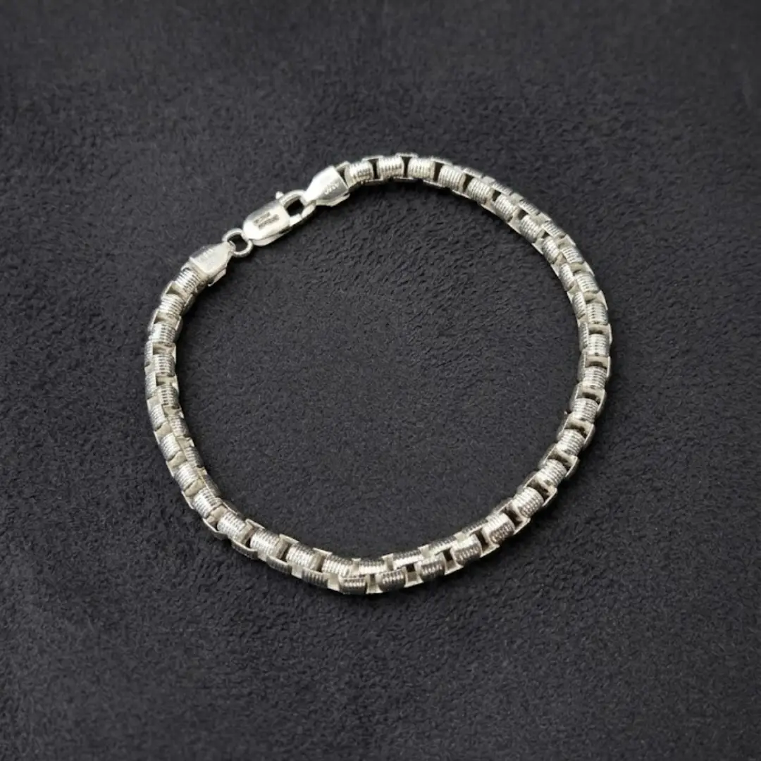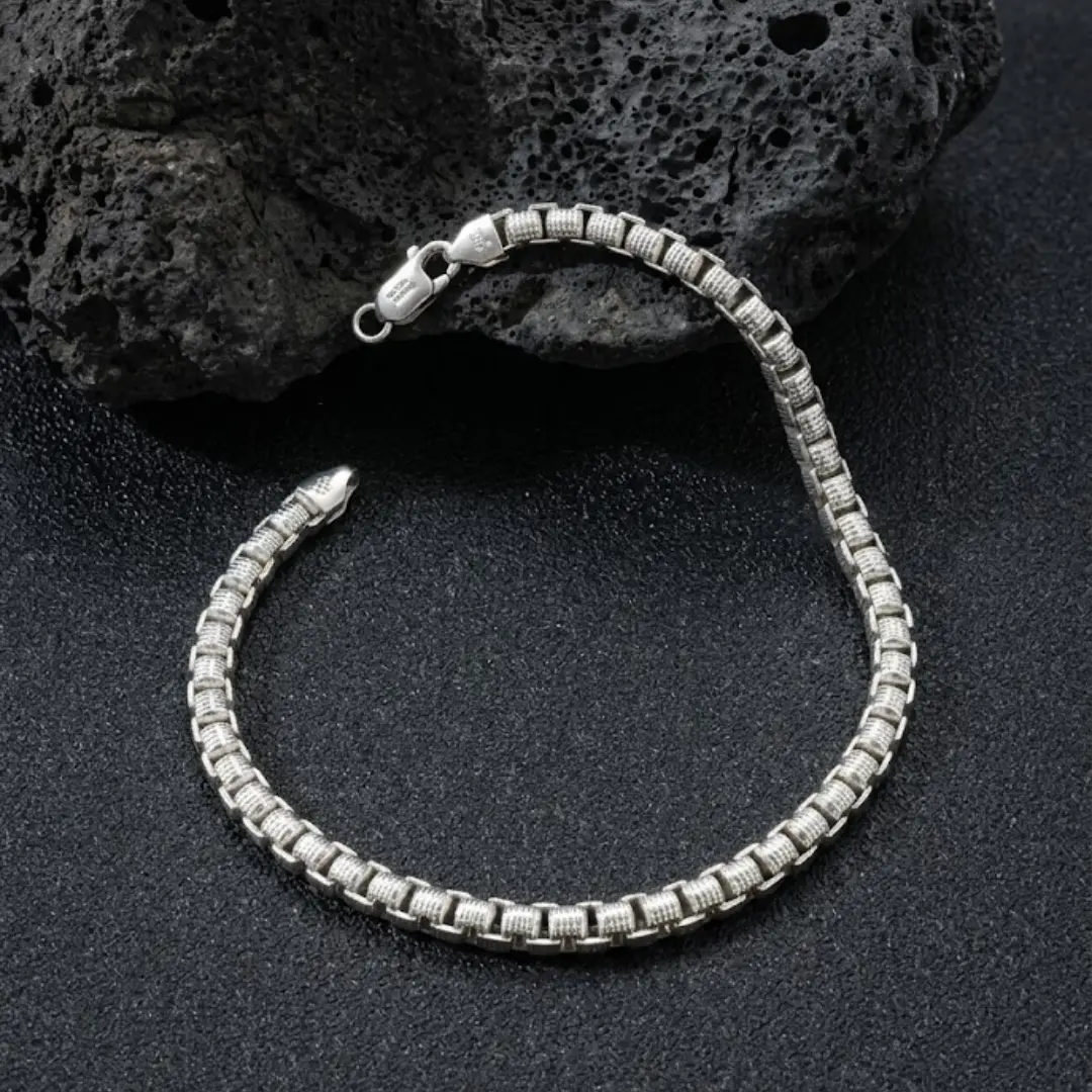 Step into the spotlight with our latest 925 Silver Men’s Bracelet. This piece showcases a contemporary Textured Box Link (Cube Link) design that perfectly balances modern industrial style with classic elegance. Each link is meticulously crafted from high-grade 925 sterling silver, featuring a unique micro-textured surface that catches the light from every angle.