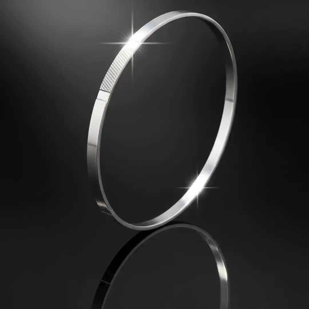 This elegant 925 Sterling Silver Bala Bangle features a refined textured panel design with a smooth polished finish, offering a perfect blend of tradition and modern style. The subtle engraved texture adds character while keeping the overall look minimal and classy.