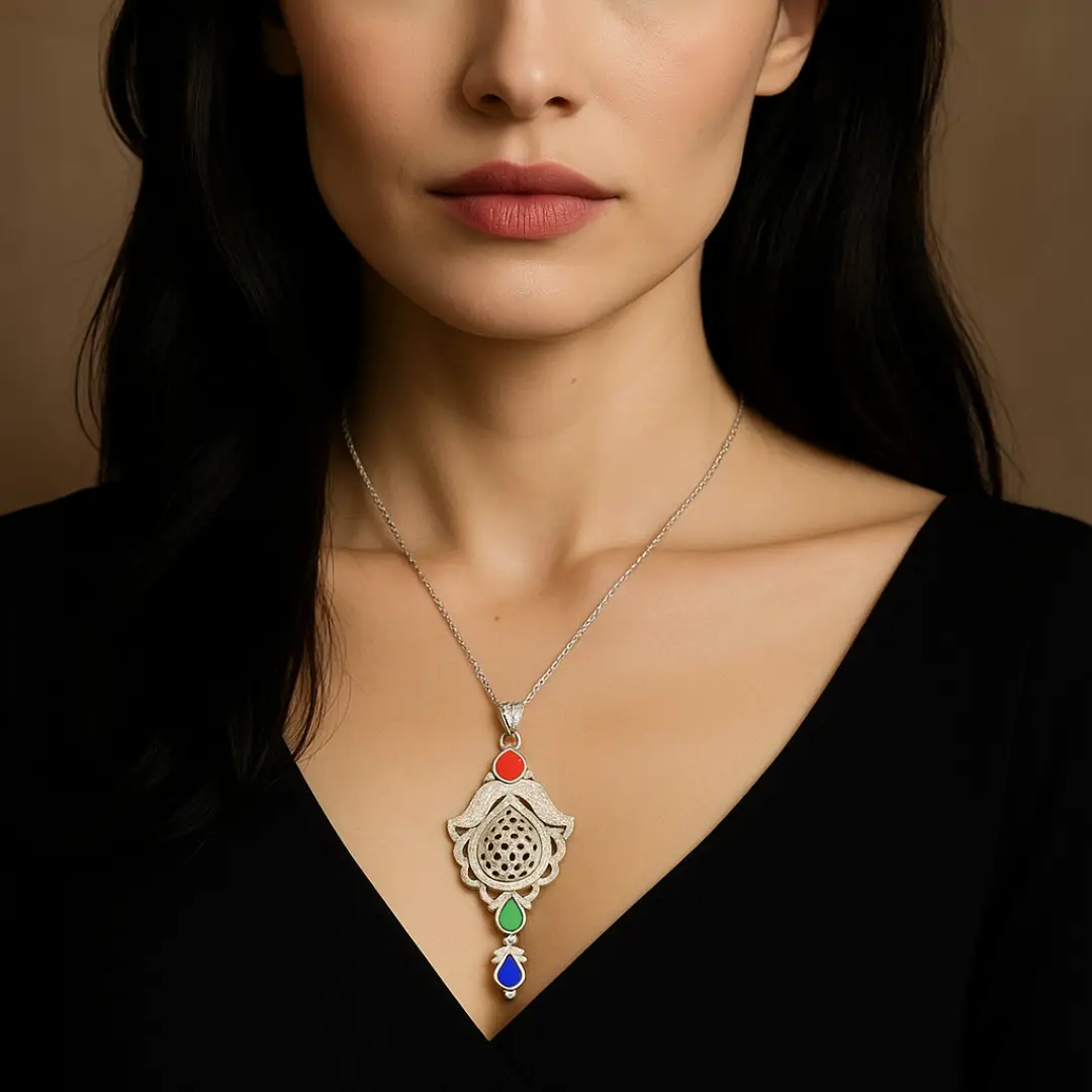 Pair it with a silver chain to elevate sarees, kurtas, and traditional outfits with timeless sophistication.