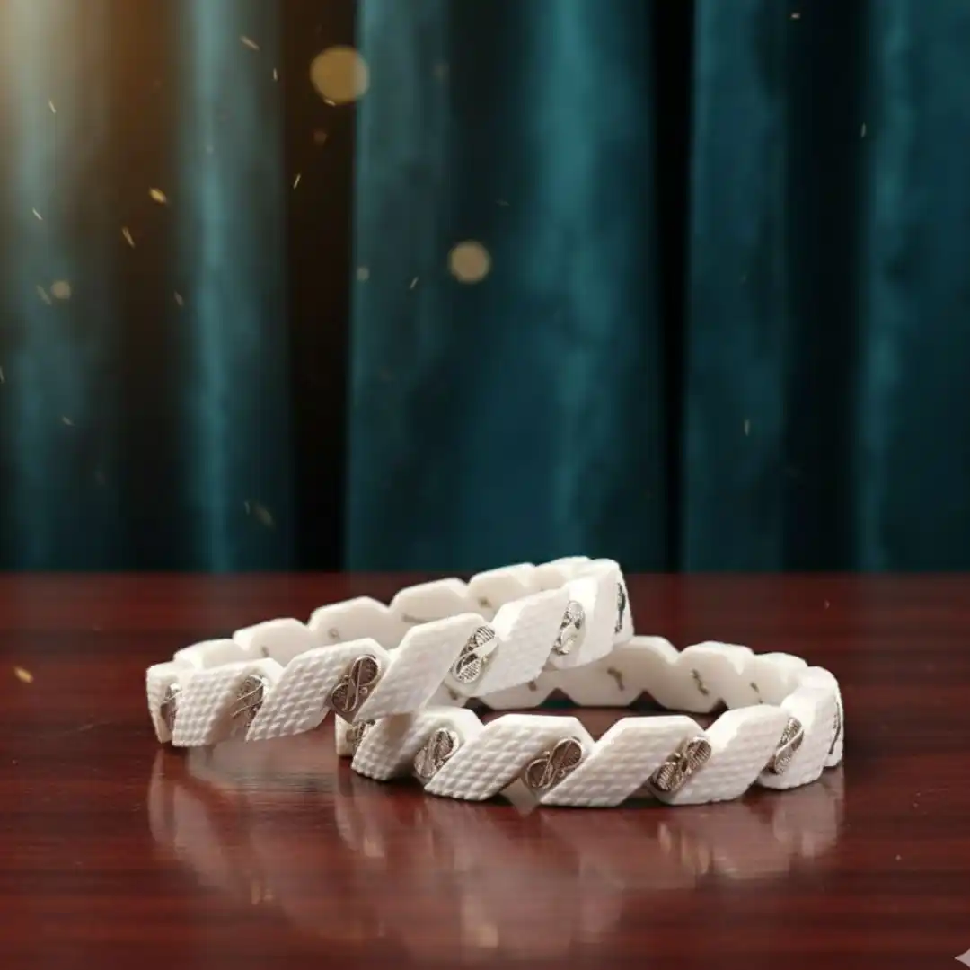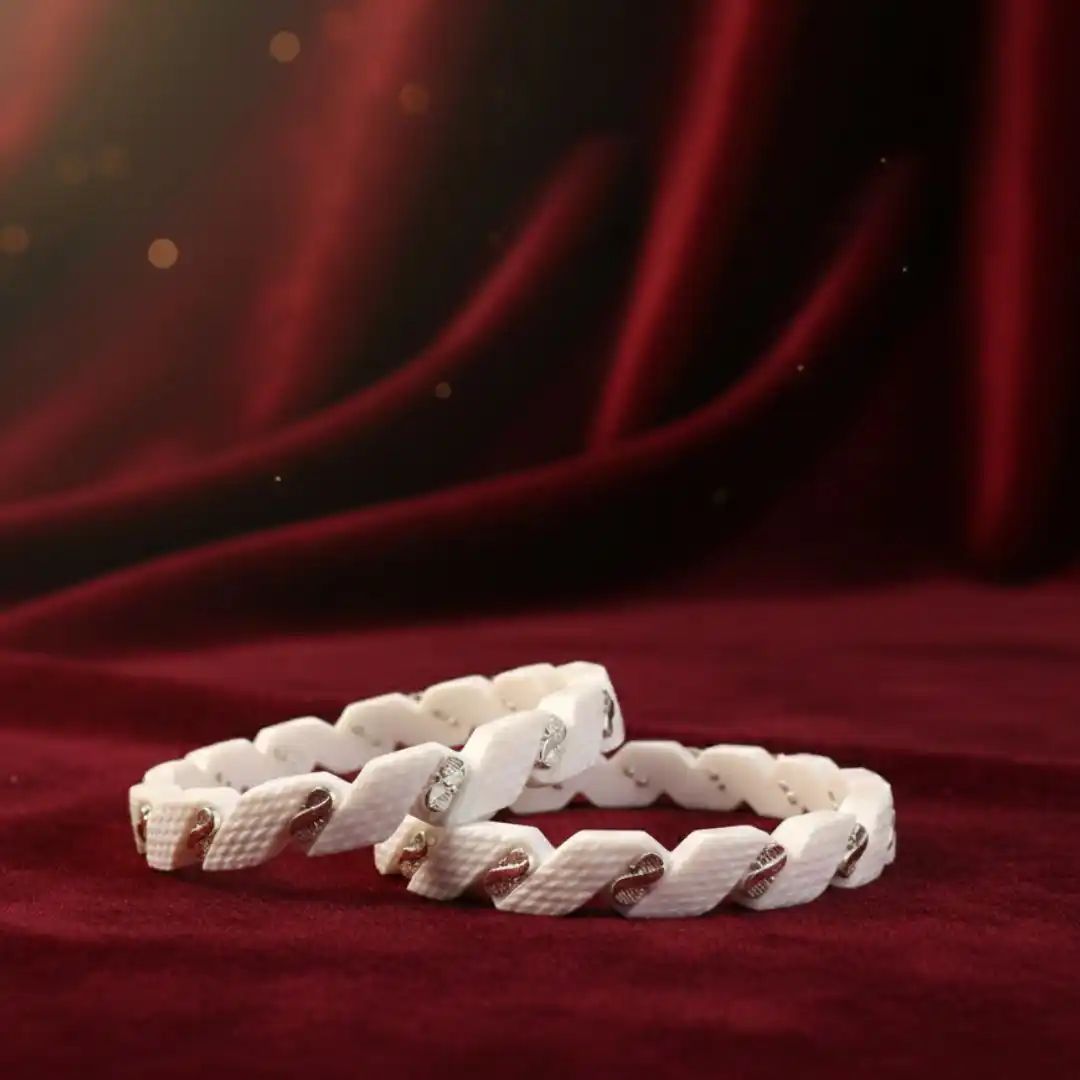Honor timeless Bengali tradition with these 925 Sterling Silver Traditional White Shankha Bangles. Designed with a classic white base and enhanced by genuine 925 sterling silver detailing, these bangles symbolize purity, prosperity, and marital bliss. Lightweight yet durable, they offer all-day comfort and elegance. Perfect for weddings, pujas, festivals, and everyday traditional wear, these bangles beautifully complement any ethnic ensemble.